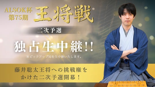 株式会社 囲碁将棋チャンネル(本社:東京都千代田区、代表取締役社長:山口哲史)が運営するYouTubeチャンネル「囲碁将棋プラス」およびCS放送「囲碁・将棋チャンネル」では、『ALSOK杯 第75期王将戦 二次予選』の注目対局を独占生中継いたします。