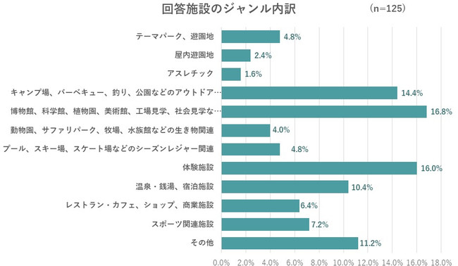 ちなみに、今回のアンケートに回答してくれた施設ジャンルの内訳は以下の通り。