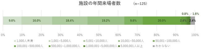 まず、今回のアンケート対象となった125施設の施設規模(年間来場者数)について。