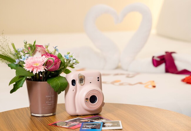 お部屋には、ホテルスタッフによる“白鳥のタオルアート”と撮影アイテムとしても人気の“フィルムバルーン”、事前にお好みのカラーを伺いご用意した“アレンジメントフラワー”などで、特別な日を華やかに演出いたします。さらに、思い出の1日を写真でも残していただけるよう、貸出し用のインスタントカメラ(フィルム10枚付き)をご用意。デジタルにはないレトロな風合いの写真がお楽しみいただけるカメラで、吉祥寺散策の際にもお持ちいただけます。
