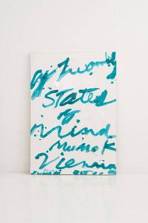 アメリカ出身。現代美術の巨匠〈Cy Twombly〉。2009年、オーストリア・ウィーンで開催されたエキシビションの為に制作されたポスター。鮮やかなブルーグリーン、伸びやかで美しい筆使いが特徴。