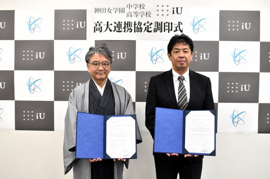 iU(東京都墨田区、学長 中村伊知哉、http://www.i-u.ac.jp)は、神田女学園中学校高等学校(東京都千代田区、校長 芦澤康宏)と高大連携協定を締結し、2024年10月16日(水)に高大連携協定式を行いました。