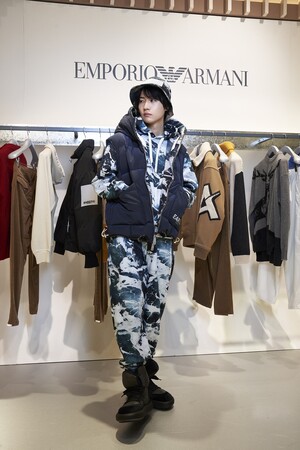 5シーズン目となる今季のエンポリオ アルマーニ、サステナブルコレクションは、北極圏の自然がもつ美しさに焦点を当て、部分的に再利用された繊維で作られた生地、生産材料のスクラップを使ったパッチワークなど、環境に配慮した素材を用いました。