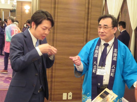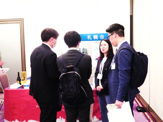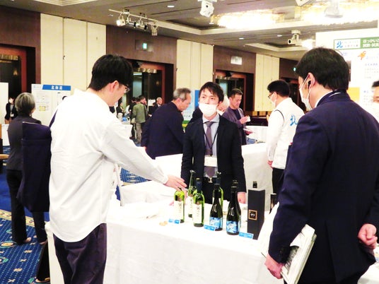 交流会会場では、食の魅力PRとして道産品の試食・試飲も行い、参加者との新たなつながりを創出する場として大いに盛り上がりました。