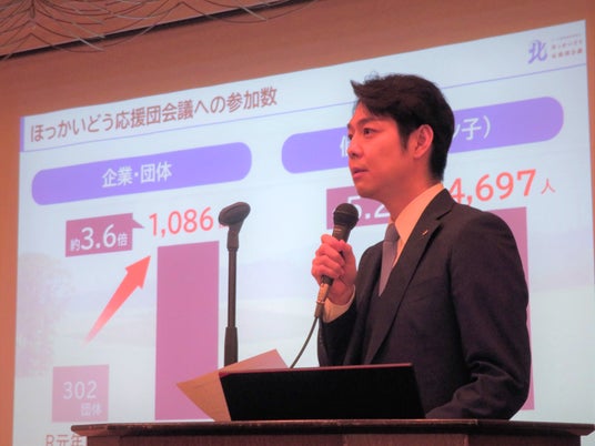 北海道では多様化・複雑化する地域課題の解決に向け、民間の皆様の知恵やノウハウをいただき、ともに北海道の未来づくりに取り組むことが必要との考えのもと、「北海道を応援したい」という方々のネットワークとして、2019年に「ほっかいどう応援団会議」を発足しました。