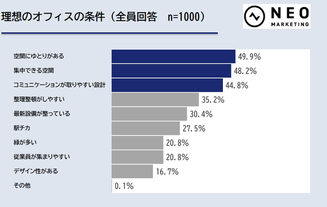 理想のオフィスはコロナを考慮し「ゆとりのある空間」が最多。
