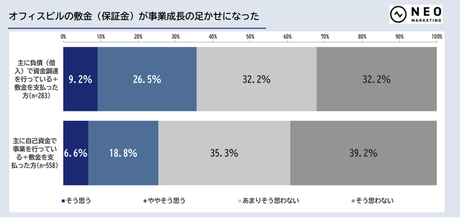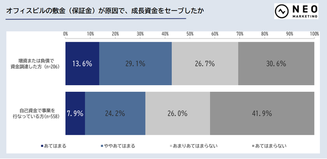 また、増資または負債で資金調達を行なった経営者の42.7%が「敷金(保証金)が原因で、成長資金をセーブした」と回答しました。