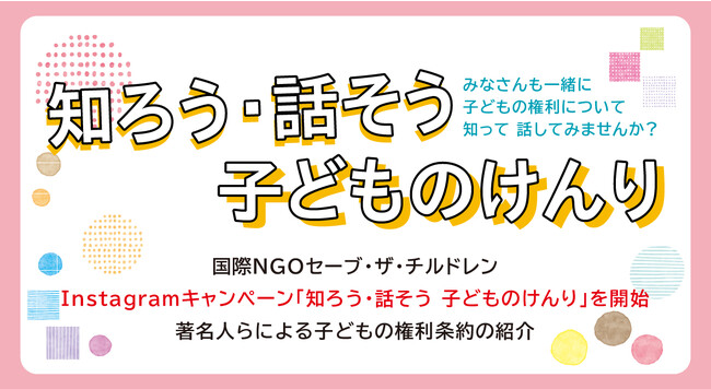 子ども支援専門の国際NGO公益社団法人セーブ・ザ・チルドレン・ジャパンは、すべての子どもにとって、生きる・育つ・守られる・参加する「子どもの権利」が実現されている世界を目指し、「子どもの権利」の普及啓発活動に取り組んでいます。11月6日より、「子どもの権利」の認知促進を目指し、「知ろう・話そう 子どもの権利」キャンペーンをインスタグラム上で開始します。