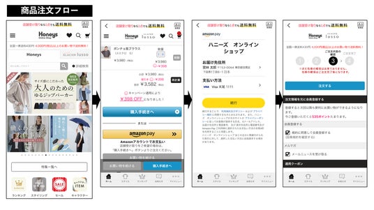 この度のAmazon Pay対応は、レディースファッションブランド「ハニーズ」様の公式アプリにも採用いただきました。