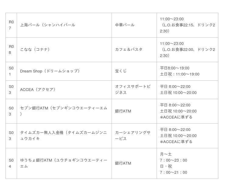 店舗数:39店舗(第I期リニューアル開業時。営業中店舗含む。ATMは含まない)