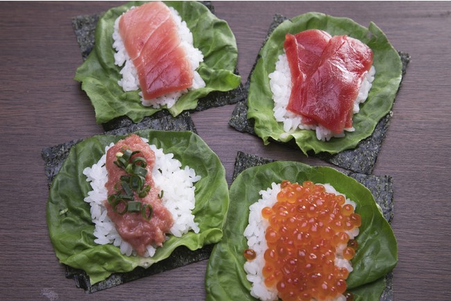 国産の生本マグロを使用した海苔手巻き3種とお刺身を、期間限定の特別価格で提供いたします 。 鮪は長崎県対馬産の本マグロを使用。冬の荒波が厳しい日本海で育った鮪は、とろける食感とまろやかな旨味を持った美味しさです。水揚げそのままの新鮮な味わいをお楽しみください。赤身、中トロ、中落ちの3種をご用意いたしますので 、食べ比べしてみるのもおすすめです。さらにキャンペーン期間内は、通常よりもいくらの量を1.5倍増量した「こぼれいくら手巻き」も提供いたします。