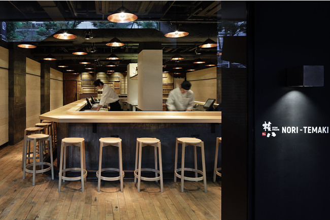 「権八 NORI-TEMAKI 原宿」は、 ブッシュ元大統領と小泉元首相の歴史な「居酒屋会談」や、映画「Kill Bill」のシーンのモデルになったことで知られる 和食レストラン「権八」の海苔手巻き専門業態です。 2018年5月30 日に、表参道・原宿にオープンしました。ミシュラン星付き寿司店御用達の高級海苔「こんとび」を使用した、こだわりの海苔手巻きを提供しています。店内は、一本松から作られた360度カウンターを中心とした、「モダンデザインと日本文化の融合」をテーマにした落ち着きのある雰囲気で、デートやビジネスランチ、ご家族でのお食事等におすすめです。
