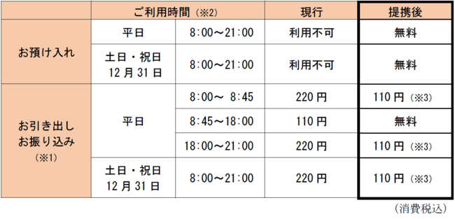 ※3 平日8:45~18:00以外の時間外手数料(110円)は従来どおり必要となります。