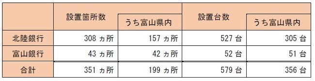 当行および富山銀行が設置している店舗内および店舗外の全てのATM