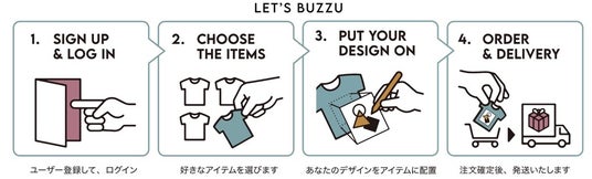「BUZZU(バズユー)」は、誰でも簡単にオリジナルグッズやTシャツを1点から作ることができるECサイトです。Tシャツ、帽子、エプロンなどのアパレルやトートバッグ、キーホルダー、マグカップなど150種類のアイテムを取り揃えており、自分の好きなアイテムに好きなデザインを自由にカスタマイズすることができます。豊島が展開するオーガニックコットン普及プロジェクト「ORGABITS(オーガビッツ)」のオーガニックコットンを100%使用した寄付金つきのTシャツや、廃棄予定食材から抽出した色を使って染めた「FOOD TEXTILE(フードテキスタイル)」のTシャツ、100%繊維由来の再生ポリエステルを素材の一部に使用した「BLANK APPAREL(TM)」のTシャツなど、サステナブル素材も使用しながらオリジナルグッズやノベルティを作成できます。