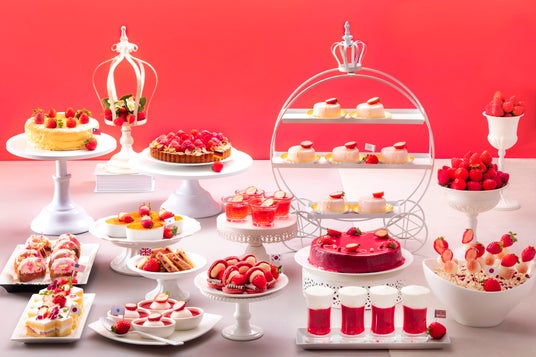 人気の国産フレッシュいちご食べ放題に加え、世界のいちごスイーツが愉しめるいちごスイーツブッフェ。国産フレッシュいちご3種、スイーツ約15種、セイボリー11種をご用意しております。