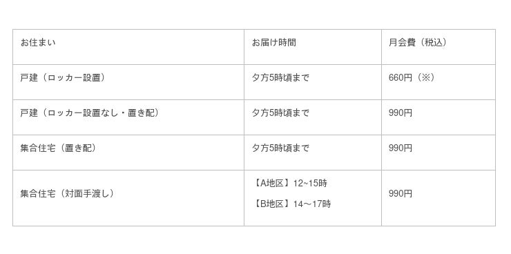月会費990円(税込)のお支払いで、配達料は何回使っても無料(※)