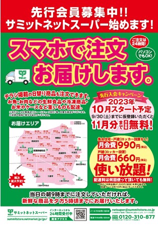サミットストア武蔵野緑町店は、2023年10月より、「サミットネットスーパー」を開始します。