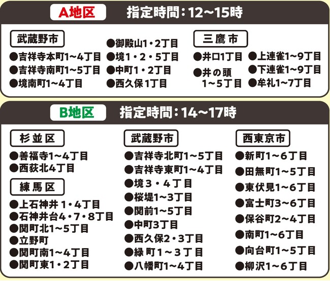 ●お届けエリア(東京都武蔵野市、三鷹市、西東京市、練馬区、杉並区の以下の地域)