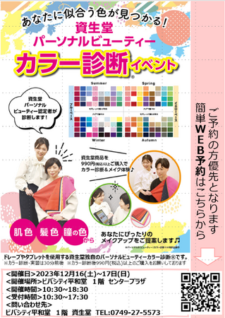 資生堂パーソナルビューティーアーティストによる「カラー診断」イベントを同時開催します。