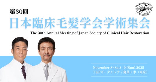 日本臨床毛髪学会は、毛髪科学および再生医療の分野における最新の知見共有と臨床応用を目的に活動しており、毛髪に関する基礎研究から臨床までを包括的に扱う国内最大級の専門学会です。2025年11月8日(土)から2日間にわたり開催された「第30回 日本臨床毛髪学会学術集会」では、「未来へ~基礎と臨床の融合~」をテーマに、医療機関や研究者、関連企業が一堂に会し、再生医療・幹細胞研究・植毛技術などに関する最新の研究成果が発表されました。