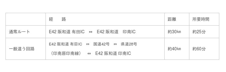 完 成 区 間: E42 阪和道およびE42 湯浅御坊 有田IC~印南IC 間 (約30km)