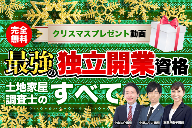 【完全無料】クリスマスプレゼント動画!最強の独立開業資格!土地家屋調査士のすべて のお申し込みを開始しております。