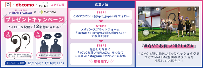 さらに、本イベントと連動したローンチ記念プレゼントキャンペーンも同時開催いたします。応募方法はQVCジャパン公式インスタグラムアカウントが投稿した本キャンペーン告知に、1.アバターとなったお客さまの自撮り、または、2.イベント参加時のスクリーンショットにハッシュタグ「#QVCお買い物PLAZA」を付けてご自身のインスタグラムフィードへご投稿ください。QVCは、MetaMe(R)を通じて、TVとECとお客さまをメタバース上でシームレスに結ぶ新しい顧客体験を創造いたします。