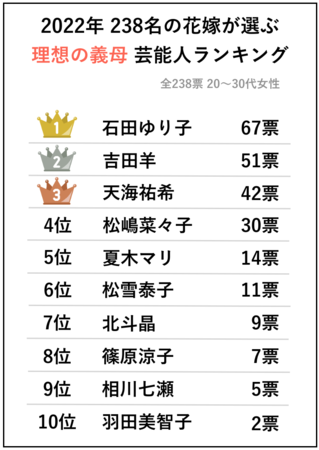 ・インスタユーザーが選ぶ理想の義母 1位は 石田ゆり子さん。