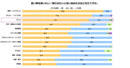 ダンスは、子ども自身がきっかけに習い始めるケースが7割を超える。
