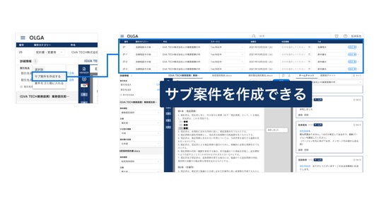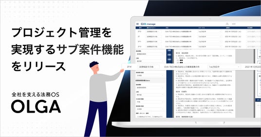 GVA TECH株式会社(本社:東京都渋谷区、代表取締役:山本 俊、以下GVA TECH)は、OLGAの法務データ基盤にてサブ案件機能をリリースしたことをお知らせします。