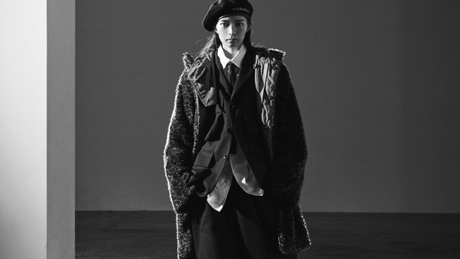 パッチワークやステッチワーク、補強されたユーズドのワークウェアのような生地とレザー、あるいはニットとの組合せが、パターン(型)構成で巧みにつくられたアイテム。墨染リネンなどのヴィンテージディテール。リメイクされたように、ツギハギやステッチをあえて外したキルティングの表現。