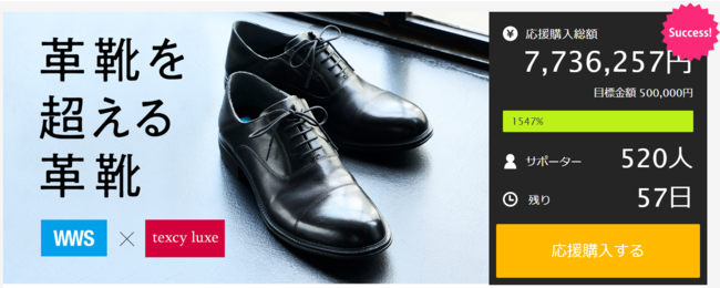 作業着スーツ発祥のボーダレスウェアブランド「WWS/ダブリューダブリューエス」(以下、WWS)を企画・販売する株式会社オアシスライフスタイルグループ(所在地:東京都港区、代表取締役:関谷有三)は、2022年8月3日(水)より応援購入サイト「Makuake」にて先行販売している、アシックス商事株式会社(本社:兵庫県神戸市、代表取締役社長:白川正人)が展開する「texcy luxe/テクシーリュクス」と共同開発した“カカトが踏める”*1「ボーダレス本革シューズ」が、ページ公開1週間で目標金額の1500%を達成するほどの大好評ぶりから、早くも追加増産を行うことを決定いたしました。8月12日(金)12:00より応援購入サイト「Makuake」にて完売商品の追加販売を開始いたします。