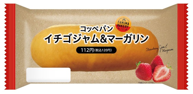 【内容】フルーティなイチゴジャムと口どけのよいマーガリンをサンドしました。牛乳を使用したほんのり甘いコッペパンに、イチゴジャムの酸味がよく合う仕立てです。