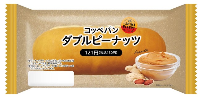 【内容】ピーナッツクリームと粒ピーナッツクリームの2種類のクリームを使ったコッペパンです。粒ピーナッツクリームとクリーム中のピーナッツの粒量を増やすことで、粒の食感と食べ応えをアップさせました。