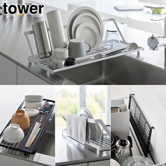 シンク上スリム水切りラック タワー シリコーントレー付き