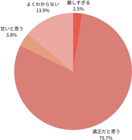 アコムの審査基準については、「適正だと思う」人が79.7%で最も多く、「甘いと思う」人も3.8%いた。