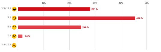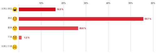 アコムの即日融資の満足度評価では、「非常に満足」「満足」との評価が合計で7割以上集まった。