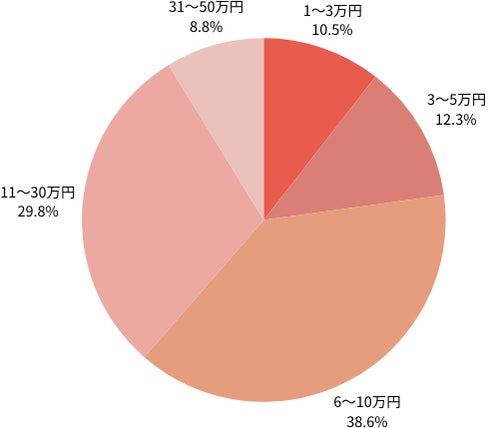 アコムで即日融資を受けた人の借入希望額は「6~10万円」が最も多く、概ね50万円以内に設定していることがわかった。