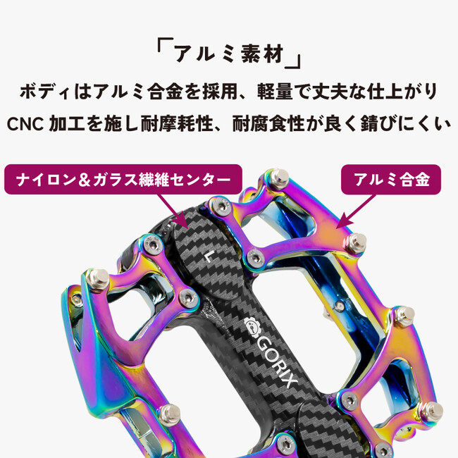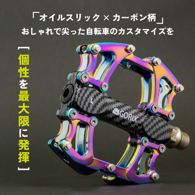 自転車パーツの開発・製造・販売を手掛ける、GORIX株式会社(所在地:大阪市東淀川区瑞光3-9-29、代表取締役:長野明)の自転車パーツブランド「GORIX」の公式Twitterで、9/6(火)~9/12(月)23:59まで新商品の「オイルスリック×カーボン柄の個性的なフラットペダル(GX-Fi777)」のTwitterプレゼントキャンペーンを開催! 応募条件は「GORIX」公式Twitterのフォローと対象Tweetのリツイートのみ。「GORIX」公式Twitterでは人気サイクル商品のプレゼントキャンペーンを毎週実施しています!!