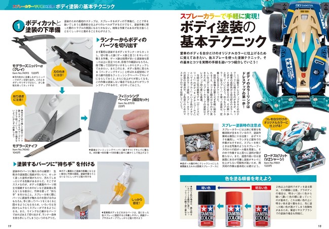 ミニ四駆マシンのドレスアップに必要なのが「塗装」。そのために必要な塗料や筆、スプレーなどの基本ツールの役目と使い方について、プロが徹底的に解説します。