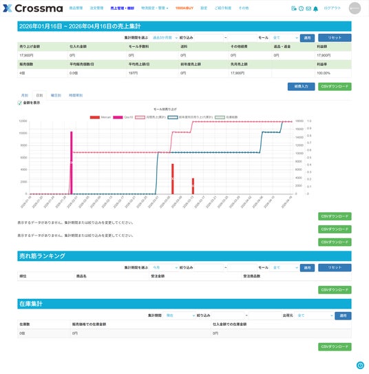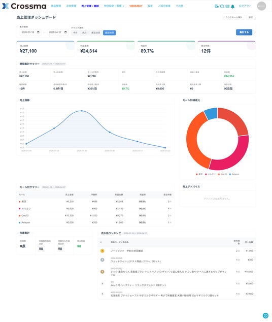 株式会社IZUMI(本社:東京都中央区京橋、代表:藤本卓治)が提供する「クロスマ」は、複数のネットショップの販売データを集約し、直感的に分析を可能にする「売上管理ダッシュボード(ベータ版)」を公開したことをお知らせいたします。
