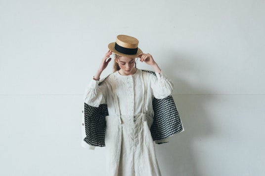 表地は、コットンラミーの平織り生地に中綿キルティング加工を施し、裏地にはサスティナブルな素材「UpcycleLino(アップサイクルリノ)」を用いたギンガムチェック(ベスト・コート)と、ブロックチェック(ジャケット)のリバーシブル仕様です。