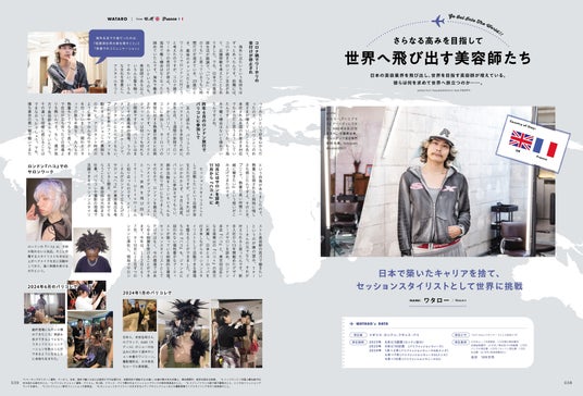 第二特集は「世界へ飛び出す美容師たち」。イギリス・ロンドンに本店を置く『ハコ+』日本1号店店長となったワタローさん。BHAファイナリストに輝いた『トニーアンドガイ』舘野 唯さん。家族を連れて世界を旅した『ケノミカ』依光なおとさん。欧米諸国放浪中の『カルタ』テリさん。札幌からブルックリンに飛び出した『ハチナナブルックリン』渡瀬弘也さん。日本を飛び出し、異国で学んだことは? 日本にいるだけでは見えてこない、美容の神髄、世界の美容業界を教えてもらいます。
