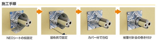 「フィブロックNEO」シートを留め具で固定し、カバー材を被覆付き針金で巻くだけ!