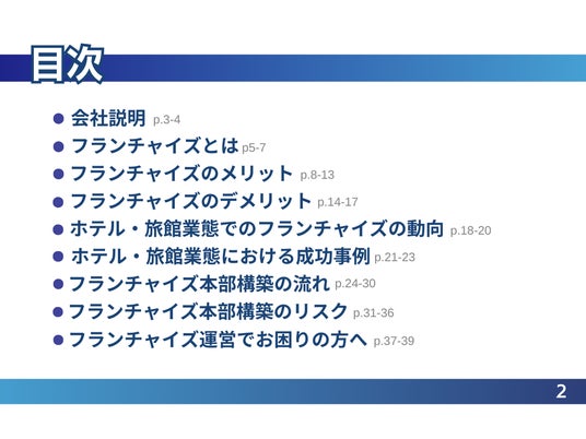 旅館・ホテル業態の動向や成功事例、フランチャイズ加盟店のパフォーマンスを向上させるための改善策も紹介