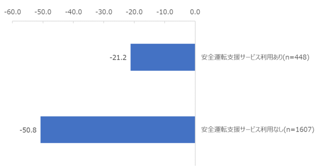 さらに、安全運転支援サービスの利用経験の有無別にNPS(R)を分析したところ、利用経験がある人は、ない人に比べてNPS(R)が高い傾向がみられました。安全運転サポートや、運転状況に応じた保険料の割引といった契約者の安全運転を支援し、交通事故を削減する取り組みの重要性が示唆されました。