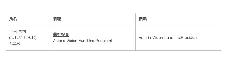 2019年2月に設立した投資子会社。当社グループの成長戦略を加速するため、世界的な視野においてアステリアグループの注力投資領域である「4D」(Data, Device, Decentralized, Design)に合致する企業への効率的な投資を行う。