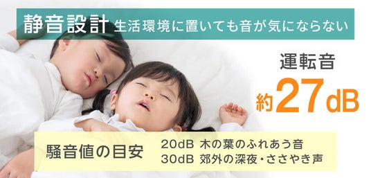 運転音は約27dBです。ささやき声や深夜の住宅街が25dBとされている為、キッチンだけでなく、パントリーやリビングなど日々の生活空間に置いても静かで気にならず、快適にお過ごしいただけます。