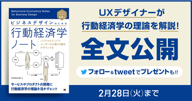 株式会社翔泳社(本社:東京都新宿区⾈町5、代表取締役社長:佐々木幹夫)が運営する、企業で働くクリエイターをサポートすることを目指すウェブマガジン「CreatorZine(クリエイタージン)」は、書籍『ビジネスデザインのための行動経済学ノート』(中島 亮太郎/著)を2023年2月22日(水)~2月28日(火)の期間限定で、全ページ無料公開します。
